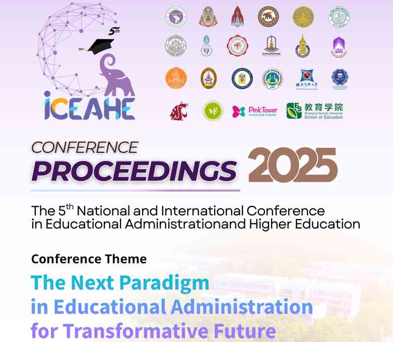 Proceeding ICEAHE 2025 Proceeding ICEAHE 2025 - Content บรายงานสืบเนื่องจากการประชุมวิชาการ ในชื่องาน การประชุมระดับชาติและนานาชาติด้านการบริหารการศึกษาและอุดมศึกษา ครั้งที่ 5 (The 5th International and National Conference on Educational Administration and Higher Education = ICEAHE 2025) เป็นความร่วมมือของมหาวิทยาลัยเครือข่ายในประเทศ จำนวน 12 แห่ง เครือข่ายต่างประเทศจำนวน 7 แห่ง ซึ่งครั้งนี้ที่ประชุมมหาวิทยาลัยเครือข่าย มอบให้ คณะศึกษาศาสตร์ มหาวิทยาลัยเชียงใหม่ เป็นเจ้าภาพหลักในการดำเนินงาน ภายใต้แนวคิด "The Next Paradigm in Educational Administration for Transformative Future" มีหัวข้อครอบคลุม 9 ด้าน ดังนี้ 1) การบริหารการศึกษา 2) การอุดมศึกษา 3) นโยบายทางการศึกษา 4) การบริหารหลักสูตร 5) ระบบการศึกษา 6) ภาวะผู้นำทางการศึกษา 7) การนิเทศการศึกษา 8) การบริหารยุคดิจิทัล และ 9) หัวข้ออื่นที่เกี่ยวข้อง มีการนำเสนอผลงานวิชาการ เมื่อวันที่ 14 มิถุนายน 2568 เวลา 13.00 – 17.00 น. ผ่านระบบ Zoom Meeting แล้วได้รวบรวมผลงานวิจัยจากนักวิชาการ นักศึกษา และผู้เชี่ยวชาญจากทั้งในและต่างประเทศ สามารถดาวน์โหลดเอกสาร กำหนดการ และเกียรติบัตรได้ผ่านเว็บไซต์ของการประชุม
